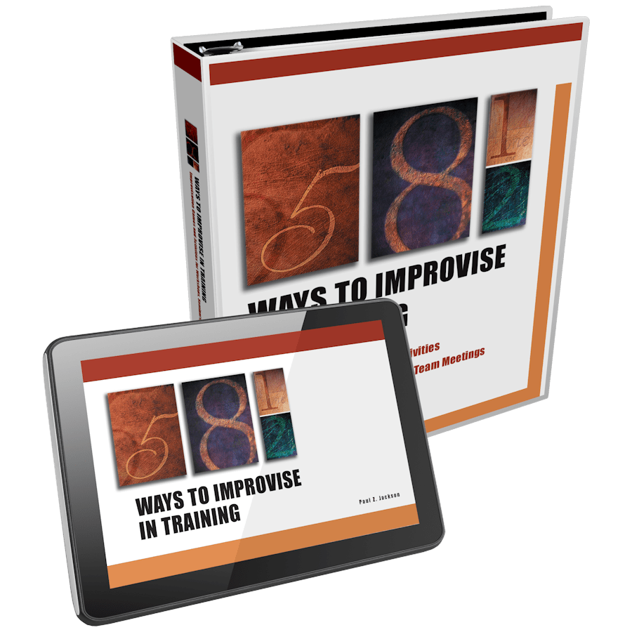 Inject “Impro Energy” into your next training session with 58 1/2 Ways to Improvise in Training. Defined as a current that runs between participants, you’ll recognize it when you see participants who are clearly “in the moment,” alert to whatever is going on in the here and now. At its best, “Impro Energy” creates flow when the quality of the learning experience is high and seemingly effortless.
