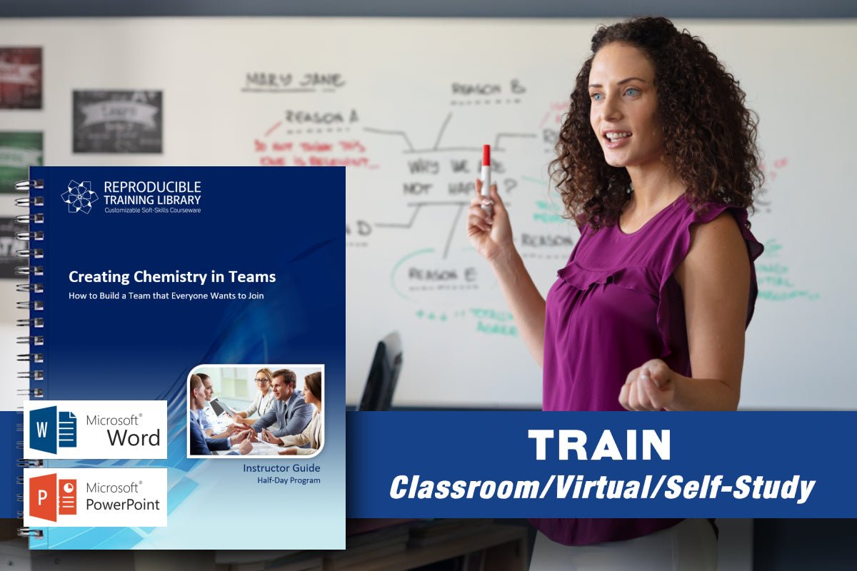 Chemistry in Teams: How to Build a Team that Everyone Wants to Join is appropriate for anyone who may have influence on the structure of a team. It shows participants how to identify and correlate diverse but complementary skills, characteristics, and strengths to team roles. They are also able to learn techniques for observing interactions, establishing positive communication patterns, overcoming groupthink, developing mutual accountability for results, and boosting morale.
