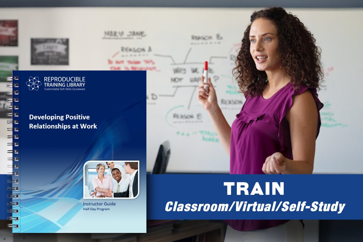 Developing Positive Relationships at Work is a learning tool that organizations need to ensure that individuals unite around a common mission, value diversity, rise above personal slights, take responsibility, and cultivate an environment based on trust. This training will help you model the behavior you want as well as teach the value of getting to know your employees as individuals.