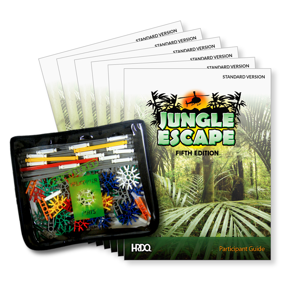 The Jungle Escape Inter-Team Version is designed to teach multiple teams from different areas or departments how to work with each other more effectively. If your participants would benefit from a cross-team, rather than direct-team, training experience, you should give our Inter-Team Version a try! The standard Jungle Escape Facilitator Guide includes discussion questions, normative data, and instructions for administering the Inter-Team Version – all you need to do is purchase the Inter-Team Participant Guides to conduct your session. All other kit components for running the game are the same.