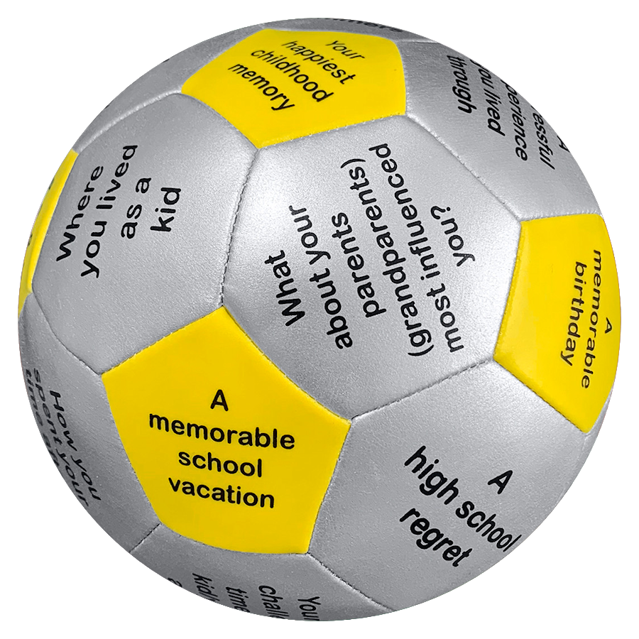 The Shaped by Our Past Thumball helps groups talk about past experiences in a fun and engaging way. It’s perfect for use at work, school, or at home to break the ice and create an inviting environment where everyone feels invited to share. It’s one of the best collaboration team-building activities for helping participants connect through personal stories and shared experiences.